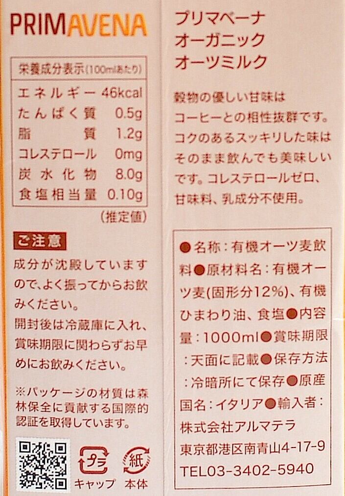 ◇プリマベーナ オーガニック オーツミルク 1000ml